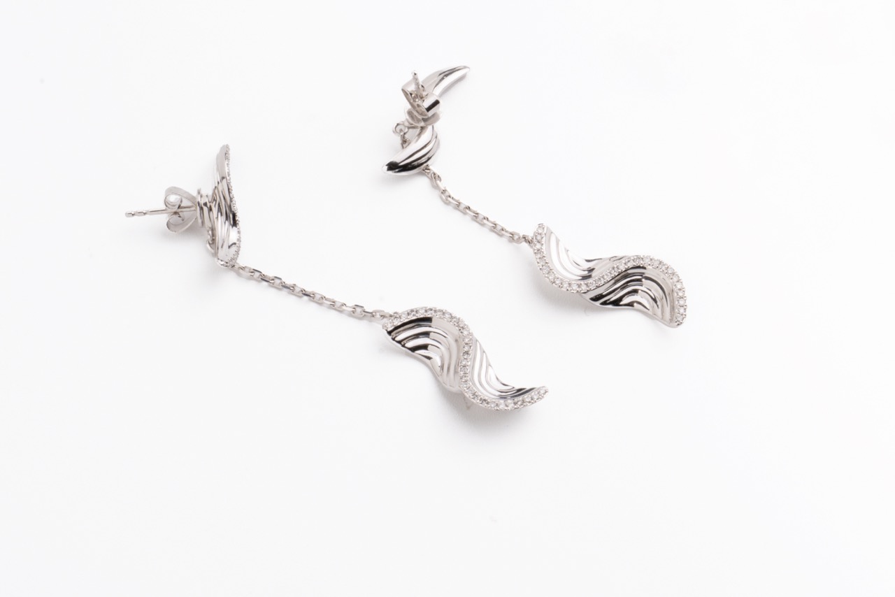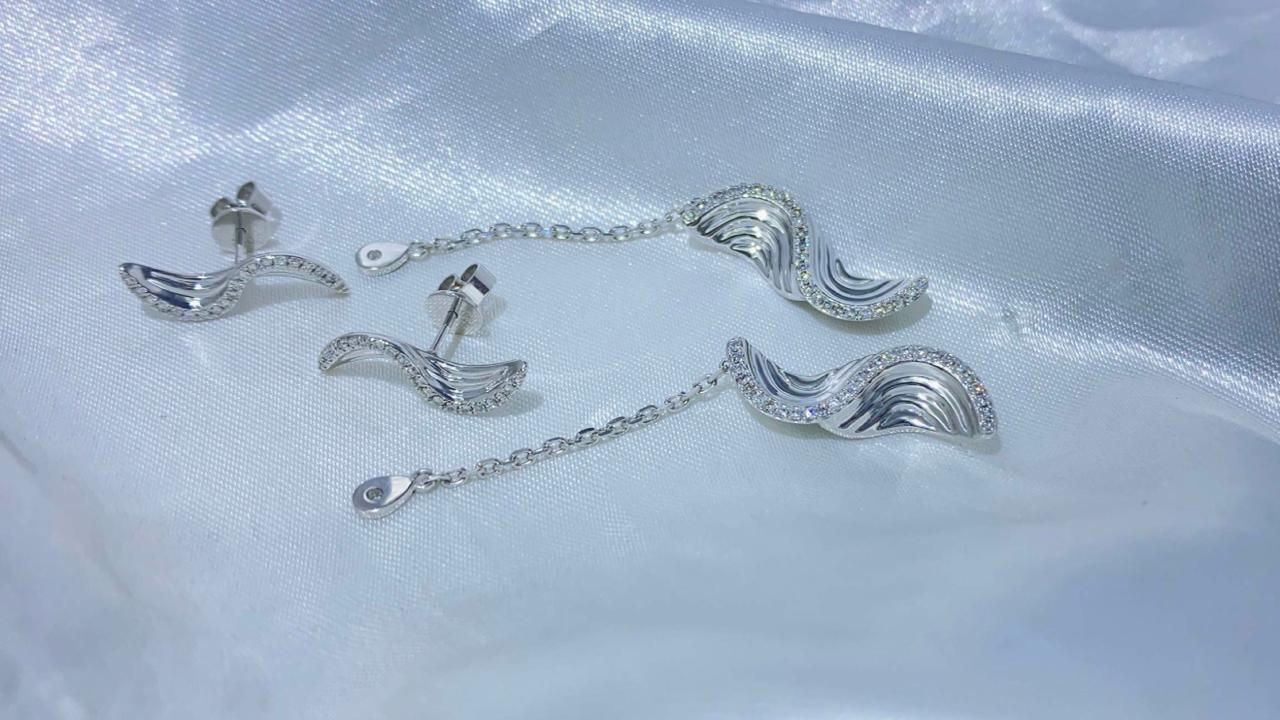The marvellous long double connect earrings 18k gold and wite diamonds inspired from sea waves, set your soul free
