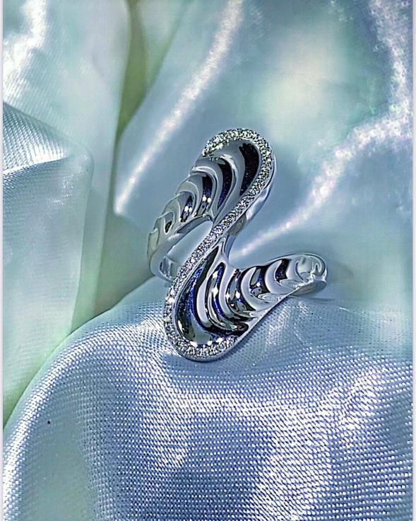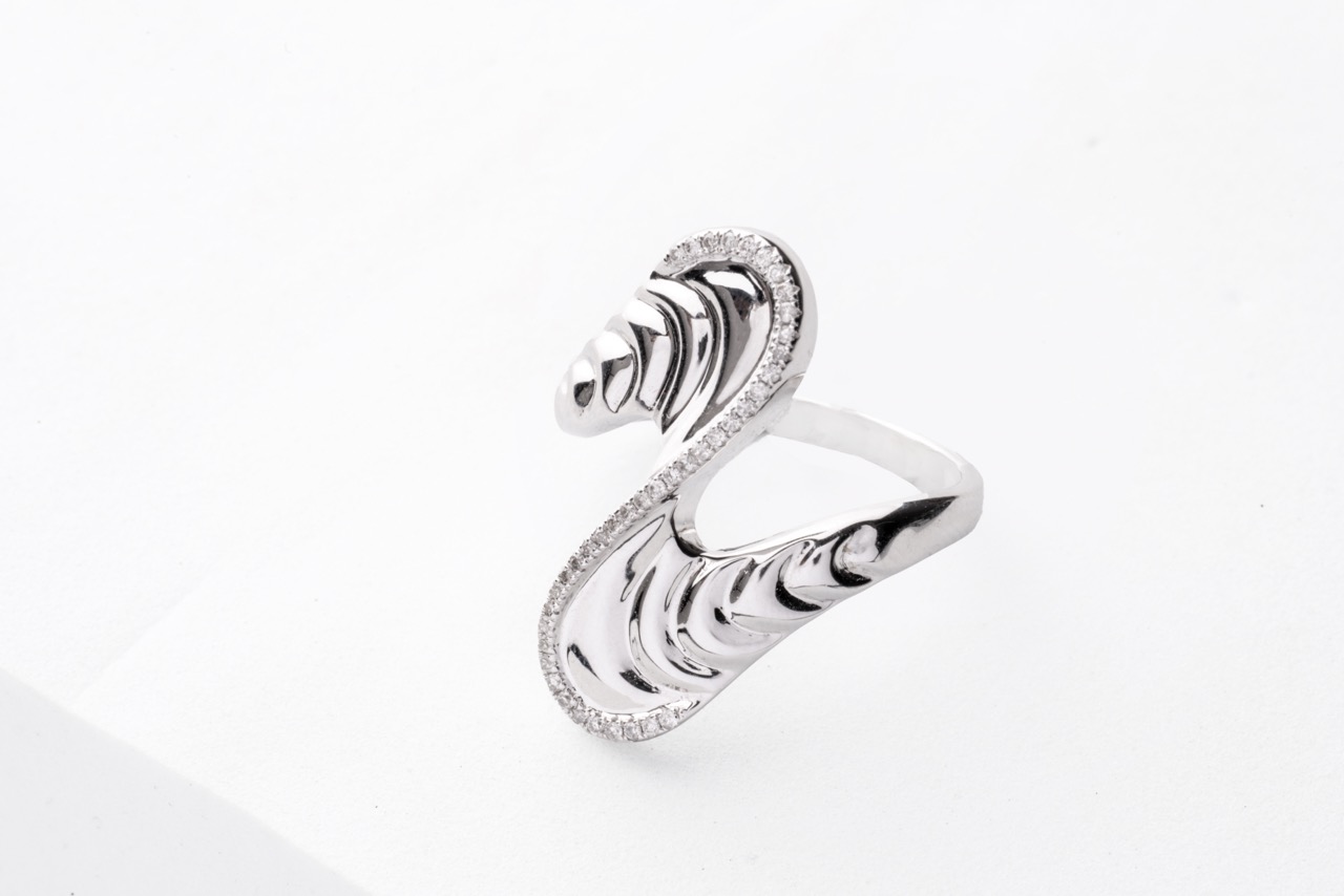 18k gold ring with natural white diamonds that is inspired from sea waves and represents challenge and resilience