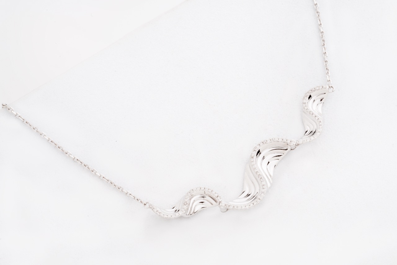 A unique18k gold and white natural diamonds necklace with a movement technique that represents sea waves beauty