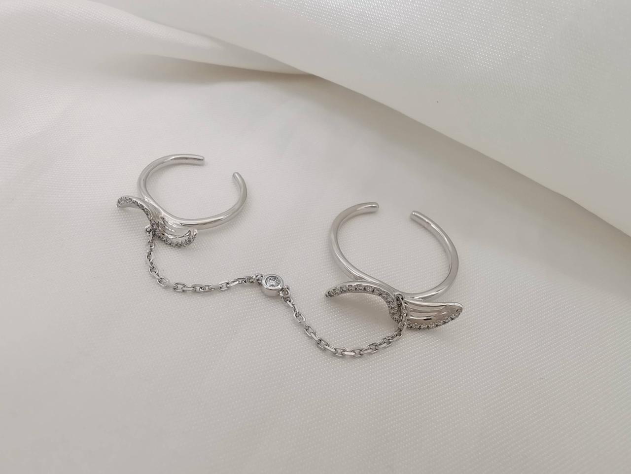 The Marvellous twin ring 18k gold and white natural diamonds The two rings are connected with chain, a diamond sit on this chain, inspired from sea waves, set your soul free